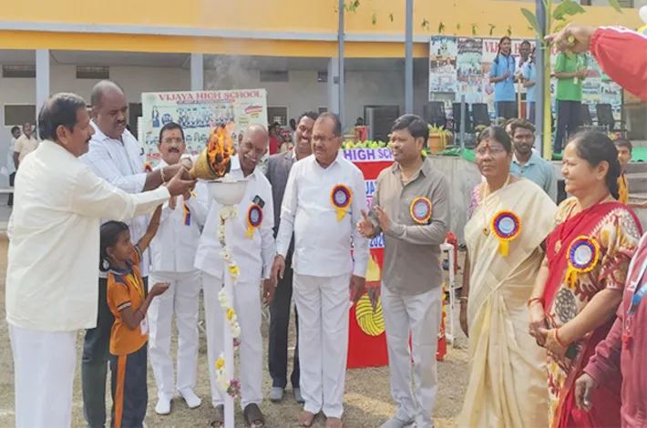 నిర్మల్,(విజయక్రాంతి): జిల్లా కేంద్రంలోని విజయ హై స్కూల్లో శుక్రవారం స్పోర్ట్స్ మీట్ జ్యోతి వెలిగించే కార్యక్రమాన్ని జిల్లా యువజన సర్వీసుల శాఖ అధికారి శ్రీకాంత్ రెడ్డి ప్రారంభించారు. ఇటీవలే అథ్లెటిక్ పోటీలో ప్రతిభ సాధించిన మహంతి అనే విద్యార్థిని సన్మానం చేశారు. పిల్లలకు క్రీడలు ఎంతో అవసరమని గుర్తు చేశారు. ఈ కార్యక్రమంలో మాజీ ఎమ్మెల్యే నల్ల ఇంద్రకరణ్ రెడ్డి పాఠశాల నిర్వాకులుభూమయ్య మంచిర్యాల నాగభూషణం మోహన్ రెడ్డి సుధాకర్ దేవేందర్ తదితరులు ఉన్నారు.
