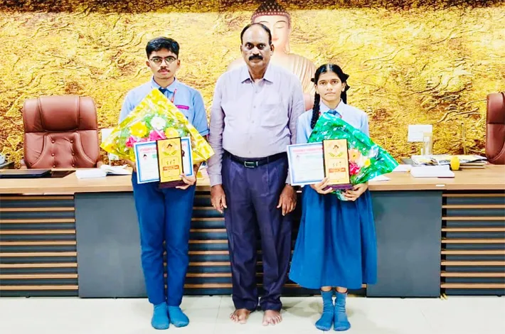 ఖమ్మం, మార్చి 11 (విజయక్రాంతి): ఖమ్మం పట్టణంలోని శ్రీనివాసనగర్లోని గీ తాంజలి విద్యానికేతన్ పాఠశాల విద్యార్థులు పి నవదీప్, యు వేదశ్రీ ఎస్ఎఫ్ఐ టాలెంట్ టెస్ట్లో అద్వితీయమైన ప్రతిభ కనబరిచి జిల్లా ర్యాంకులు కైవసం చేసుకున్నారు. పి. నవదీప్కు జిల్లా మొదటి ర్యాంకు, యు వేదశ్రీకి జిల్లా స్థాయి 8 వ ర్యాంకు వచ్చాయి.