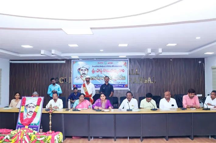 వరంగల్ జిల్లా వెనకబడిన తరగతుల సంక్షేమ శాఖ ఆధ్వర్యంలో ఏర్పాటు చేసిన దొడ్డి కొము రయ్య జయంతి కార్యక్రమంలో జిల్లా కలెక్టర్ డాక్టర్ సత్య శారద, అదనపు కలెక్టర్ సంధ్యారాణి, డిఆర్ ఓ విజయలక్ష్మి లతో కలిసి కొమురయ్య చిత్రపటానికి పూల మాలలు వేసి నివాళులు అర్పించారు. ఈ సందర్భంగా కలెక్టర్ డాక్టర్ సత్య శారద మాట్లాడుతూ తెలంగాణ రైతాంగ సాయుధ పోరాట ఉద్యమంలో దొడ్డి కొమురయ్య కీలకపాత్ర పోషించారని ఆయన అందించిన సేవలు చిరస్మరణీయమన్నారు.ఈ కార్యక్రమంలో కార్పొరేటర్ మరుపల్లి రవి, జిల్లా వెనకబడిన తరగతుల సంక్షేమశాఖాధికారి పుష్పలత, బిసి సంఘ ప్రతినిధులు, అధికారులు, తదితరులు పాల్గొన్నారు.