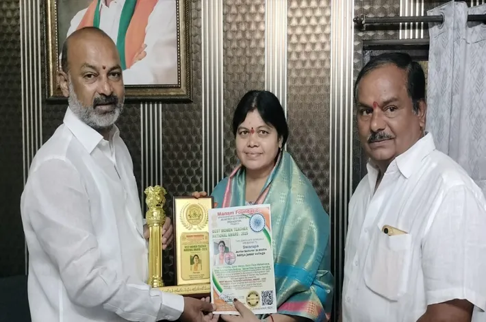 కొత్తపల్లి, (విజయక్రాంతి): గత పది సంవత్సరాల నుండి సాంఘిక గురుకుల కళాశాలలో మ్యాథమెటిక్స్ లెక్చరర్ గా పనిచేస్తూ విద్యార్థినులను ఉత్తమ విద్యార్థులుగా తీర్చిదిద్దుతూ సబ్జెక్టు పరంగా విద్యార్థినులను స్టేట్ ర్యాంకులకు కృషి చేసినటువంటి లెక్చరర్ దొగ్గలి స్వరూప ప్రతిభను గుర్తించి మన ఫౌండేషన్ ద్వారా ఆమెకు 2025 బెస్ట్ లెక్చరర్ అవార్డు ప్రకటించి దానిని కేంద్ర హోంశాఖ సహాయ మంత్రివర్యులు శ్రీ బండి సంజయ్ కుమార్ చేతుల మీదుగా ఆమెకు శాలువా కప్పి మెమొంటోను మరియు సర్టిఫికెట్ ఇచ్చి అభినందనలు తెలిపారు.