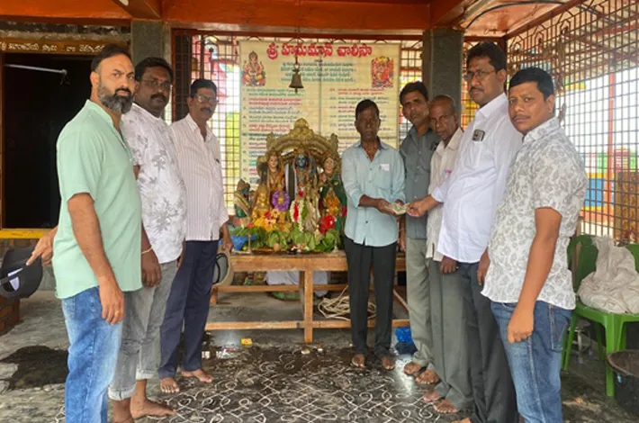 కల్లూరు,(విజయక్రాంతి): మున్సిపాలిటీ పరిధిలోని పెద్ద చెరువు కట్టపై వెలసిన శివాంజనేయ స్వామి వారి దేవాలయ ధ్వజస్తంభానికి 18వ వార్డు పుర కౌన్సిలర్ పెడకంటి రామకృష్ణ తన సేవా భావాన్ని చాటుకున్నారు.మంగళవారం ఆయన తన స్నేహితులతో కలిసి ఆలయాన్ని సందర్శించి, అర్చకులతో ప్రత్యేక పూజలు నిర్వహించారు. ఈ సందర్భంగా దేవాలయ ధ్వజస్తంభ నిర్మాణానికి వితరణగా రూ.25 వేలను ఆలయ కమిటీ సభ్యులకు అందజేశారు. అదేవిధంగా పట్టణానికి చెందిన కొటికలపూడి కళ్యాణ్ కిషోర్ కూడా తన వంతుగా రూ.10 వేల విరాళాన్ని సమర్పించారు.