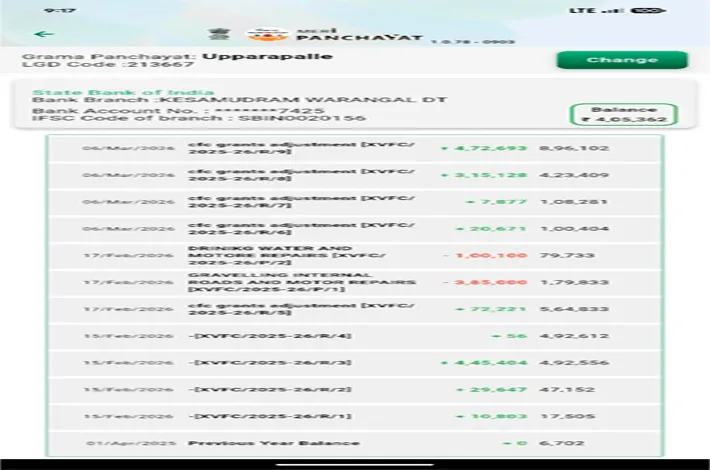 కేసముద్రం, మార్చి 11 (విజయక్రాంతి): గ్రామపంచాయతీకి ప్రభుత్వం ద్వారా నిధులు మంజూరు కాగానే, గతంలో చేసిన పనులకు బిల్లుల చెల్లింపు తో పాటు ముందస్తుగా చేయని పనులకు కూడా అడ్వాన్స్ గా డబ్బులు డ్రా చేసిన ఘటన కేసముద్రం మండలం ఉప్పరపల్లి గ్రామపంచాయతీలో చోటుచేసుకుంది. ఇటీవల ప్రభుత్వం నుండి వివిధ పద్ధతుల ద్వారా 10 లక్షల రూపాయలకు పైగా నిధులు పంచాయతీ ఖాతాలో జమ అయ్యాయి.