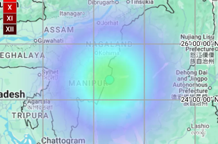 బర్మా : మయన్మార్లో మంగళవారం ఉదయం రిక్టర్ స్కేలుపై 4.7 తీవ్రతతో భూకంపం(Earthquake ) సంభవించింది. దీని ప్రకంపనలు భారతదేశంలోని మణిపూర్, నాగాలాండ్, అస్సాం రాష్ట్రాలలో కూడా సంభవించాయి. మణిపూర్లోని ఉఖ్రుల్కు ఆగ్నేయంగా కేవలం 27 కి.మీ దూరంలో, భారత సరిహద్దుకు సమీపంలో మయన్మార్లో భూకంపం సంభవించిందని నేషనల్ సెంటర్ ఫర్ సీస్మోలజీ (National Center for Seismology) నివేదించింది. ఎన్సీఎస్ ప్రకారం, భూకంపం లోతు 15 కి.మీ. అది తాకిన ఖచ్చితమైన అక్షాంశాలు అక్షాంశం 24.73 N, రేఖాంశం 94.63 E.. నాగాలాండ్లోని వోఖాకు ఆగ్నేయంగా 155 కి.మీ దూరంలో, నాగాలాండ్లోని దిమాపూర్కు ఆగ్నేయంగా 159 కి.మీ, నాగాలాండ్లోని మోకోక్చుంగ్కు దక్షిణంగా 177 కి.మీ, మిజోరాంలోని న్గోపాకు ఈశాన్యంగా 171 కి.మీ, మిజోరాంలోని ఛాంపాయ్కు ఈశాన్యంగా 193 కి.మీ దూరంలో భూకంపం సంభవించింది.