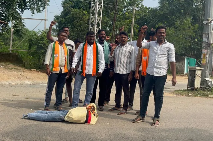 ఈ సందర్భంగా రాజ్ కుమార్ మాట్లాడుతూ మధూకర్ ఆత్మహత్యకు కారణమైన వేమనపల్లి మండల కాంగ్రెస్ పార్టీ నాయకులు రుద్రబట్ల సంతోష్, గాలి మధు, కమలను వెంటనే అరెస్టు చేసి శిక్షించాలని డిమాండ్ చేశారు. అదేవిధంగా కాంగ్రెస్ పార్టీకి తొత్తుగా మారి మధుకర్ ని మానసికంగా హింసించి ఆత్మహత్యకు ప్రేరేపించిన నిల్వాయి SI ఎస్సై నీ వెంటనే సస్పెండ్ చేయాలనన్నారు. లేనియెడల ఎవరి అండదండలు చూసుకుని కాంగ్రెస్ పార్టీ నాయకులు రెచ్చిపోతున్నారో ఆ ఎమ్మెల్యే క్యాంప్ కార్యాలయం ముట్టడిస్తామని హెచ్చరించారు. ఈ కార్యక్రమంలో మండల ప్రధాన కార్యదర్శులు గాదర్ల నాగేష్ ,ముత్తే రాములు ఉపాధ్యక్షులు గజెల్లి రఘు, నాస్పూరి లక్ష్మణ్ ,హరికృష్ణ కార్యదర్శి సాయి బిజెవైం మండల అధ్యక్షులు ఎంబాడి సతీష్, మండల నాయకులు మహేష్ ,రాజు ,శ్రావణ్ తదితరులు పాల్గొన్నారు.