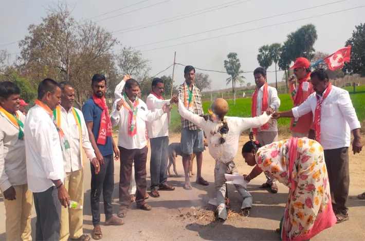కార్మికుల హక్కులను రద్దుచేసి నాలుగు లేబర్ కోడ్లను తీసుకురావడమే కాకుండా ఉపాధి హామీ చట్టాన్ని నిర్వీర్యం చేస్తూ విద్యుత్ సవరణ చట్టం, విత్తన సవరణ చట్టం, ప్రభుత్వ రంగ సంస్థల ప్రైవేటీకరణ వంటి వ్యతిరేక విధానాలకు మోడీ ప్రభుత్వం పాల్పడుతుందని వీటికి నిరసనగా మోడీ, ట్రంప్ దిష్టిబొమ్మను దగ్ధం చేశారు. ప్రజాసంఘాల నాయకులు.