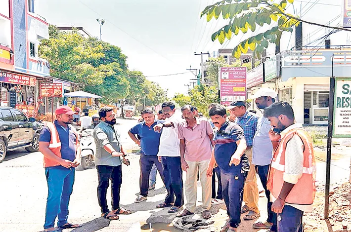 ఈ సందర్భంగా ఆయన మాట్లా డుతూ, ఈ ప్రాంతంలో ఎన్నిసార్లు రోడ్డు వేసినప్పటికీ, డ్రైనేజీ, వర్షపు నీరు రోడ్డుపైనే నిలిచిపోవడం వల్ల తరచూ గుంతలు పడుతున్నాయని పేర్కొన్నారు. భవిష్యత్తులో గుం తలు పడకుండా చూడాలని అధికారులతో మాట్లాడి పనులను త్వరితగతిన ప్రారంభించాలని కోరారు. ఈ కార్యక్రమంలో స్థానిక కాలనీ వాసులు, మున్సిపల్ అధికారులు, సిబ్బంది, స్థానిక నాయకులు పాల్గొన్నారు.