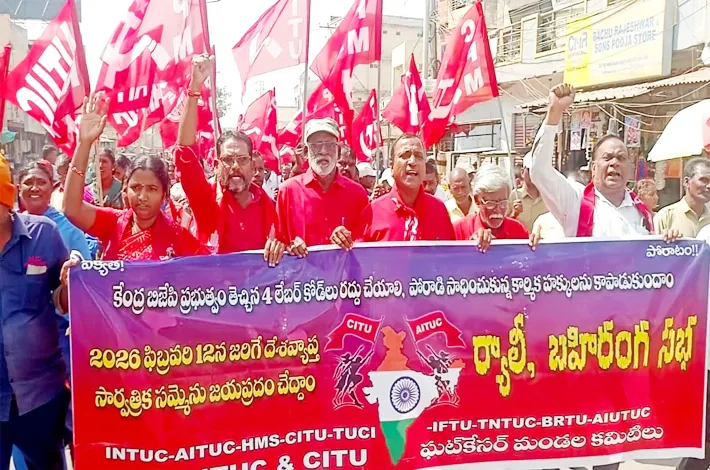 ఘట్ కేసర్,(విజయక్రాంతి): కార్మికులకు అండగా వారి కష్టాలను తీర్చడానికి ఎర్రజెండా నిరంతరం పనిచేస్తుందని ఏఐటీయూసీ రాష్ట్ర నాయకులు విఎస్ బోస్ అన్నారు. ఘట్ కేసర్ లో గురువారం నిర్వహించిన కార్మికుల దేశవ్యాప్త సమ్మె విజయవంతం అయ్యింది. ఈ సందర్భంగా ఏర్పాటు చేసిన కార్యక్రమంలో ఏఐటీయూసీ రాష్ట్ర నాయకులు వి.ఎస్. బోస్, కె. జయచంద్ర, సిఐటియు నాయకులు చింతల యాదయ్య, సిపిఎం మండల కార్యదర్శి నార్కట్ పల్లి సబిత, సిపిఐ మండల కార్యదర్శి లొట్టి ఈశ్వర్ మాట్లాడుతూ కేంద్ర ప్రభుత్వం 29గా ఉన్న లేబర్ కోడ్లను నాలుగు లేబర్ కోడ్లుగా చేసి కార్మికులను కష్టాలపాలు చేస్తుందని ఆవేదన వ్యక్తం చేశారు.