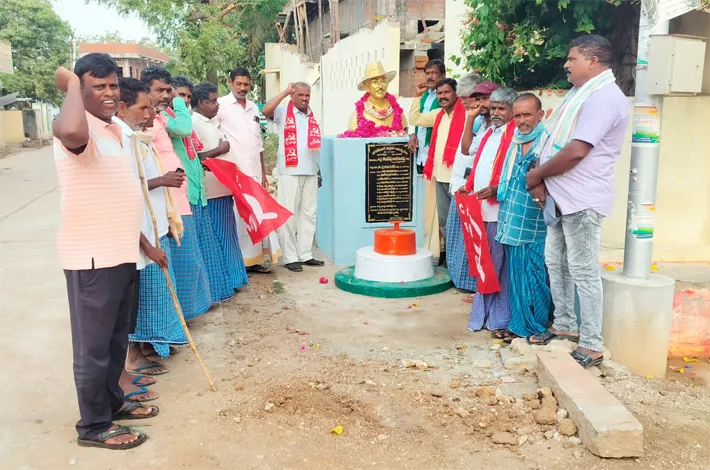 నూతనకల్, మార్చి 24: భారత దేశ స్వాతంత్య్ర పోరాటంలో యువశక్తిని మేల్కొల్పిన మహా విప్లవకారుడు భగత్ సింగ్ అని, ఆయన ఆశయ సాధనకు ప్రతి ఒక్కరూ పునరంకితం కావాలని సీపీఎం మండల కార్యదర్శి కందాల శంకర్ రెడ్డి పిలుపునిచ్చారు. మంగళవారం మండల పరిధిలోని వెంకపల్లి గ్రామంలో భగత్ సింగ్ వర్ధంతి కార్యక్రమాన్ని ఘనంగా నిర్వహించారు. ఈ సందర్భంగా భగత్ సింగ్ చిత్రపటానికి పూలమాల వేసి నివాళులర్పించారు.