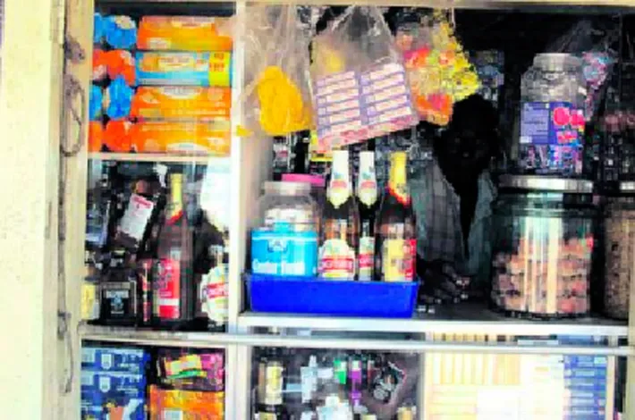 స్టిక్కర్ వేసి మద్యం అమ్మకాలు: