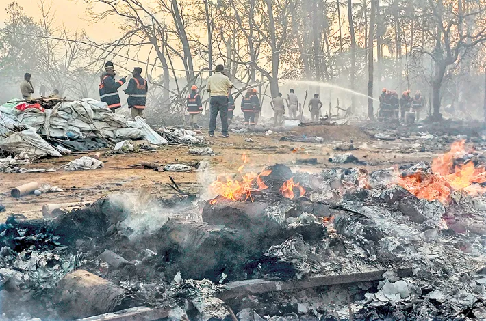 త్రివేండ్రం, ఏప్రిల్ ౨౧: తమిళనాడులోని విరుదునగర్ జిల్లాలోని ఓ పటాకుల తయారీ కేంద్రంలో పేలుడు సంభవించి ౨౫ మంది కార్మికులు మృతిచెందిన ఘటన మరువకముందే కేరళలో మరో ప్రమాదం సంభవించింది. మంగళవారం మధ్యాహ్నం కేరళలోని త్రిస్సూర్ జిల్లా ముండతికోడ్లోని పటాకుల తయారీ కేంద్రంలోనూ పేలుడు జరిగింది. పేలుడు ధాటికి మృతదేహాలు ఛిన్నాభిన్నమై చెల్లాచెదురుగా సమీపంలోని పొలాల్లో పడిపోయాయి.