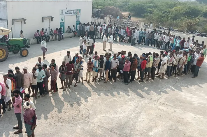నిజాంపేటలో యూరియా కోసం బారులు