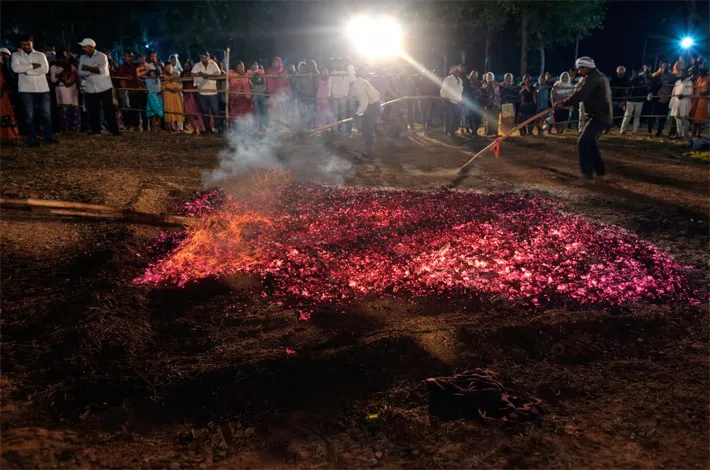 అగ్నికుండల్లో ఎర్రగా దహిస్తున్న నిప్పులపై భక్తులు దీక్షతో నడుస్తూ తమ భక్తిని చాటుకున్నారు. శివునిపై అచంచల విశ్వాసంతో, నియమ నిష్ట లతో దీక్షలు చేపట్టిన భక్తులు ఓం నమఃశివా య నినాదాల మధ్య అగ్నిగుండాలపై నడవ డం ప్రత్యేక ఆకర్షణగా నిలిచింది. ఈ కార్యక్రమాన్ని వీక్షించేందుకు పరిసర గ్రామాల నుండి పెద్ద ఎత్తున భక్తులు తరలివచ్చారు.