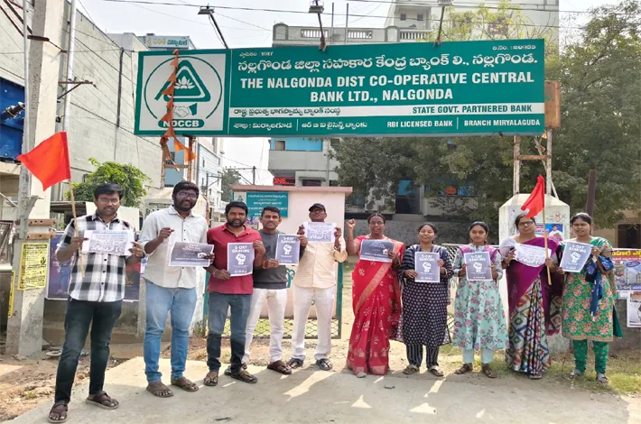 మిర్యాలగూడ,(విజయక్రాంతి): రిజర్వు బ్యాంకు మార్గ నిర్దేశాల మేరకు పనిచేస్తున్న వివిధ రంగాల బ్యాంకులలో వారానికి ఐదు రోజుల పని దినాలను అమలు చేయాలని నల్గొండ జిల్లా కేంద్ర సహకార బ్యాంకు మిర్యాలగూడ బ్రాంచ్ మేనేజర్ కందుకూరి అలివేలు అన్నారు. మంగళవారం బ్యాంకు ఐక్య కార్యాచరణ కమిటీ ఇచ్చిన పిలుపుమేరకు ఒక రోజు సమ్మె చేపట్టారు.