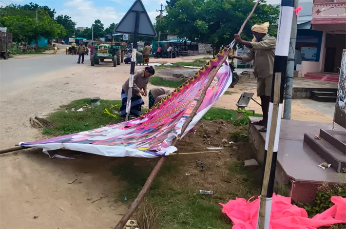 తొలగిన రాజకీయ పార్టీల ఫ్లెక్సీలు