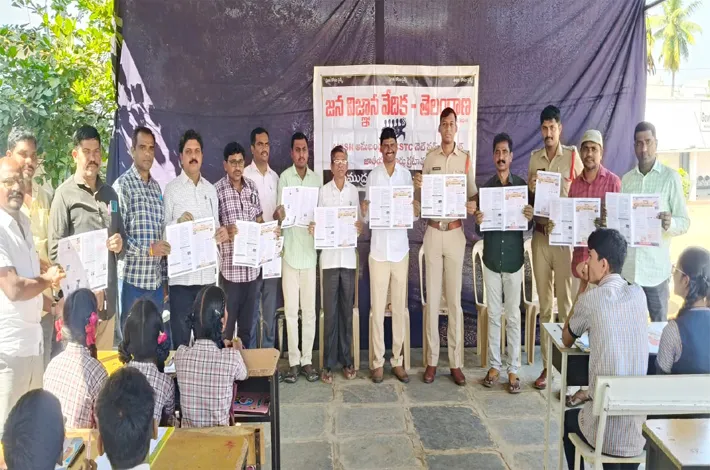 మహబూబాబాద్,(విజయక్రాంతి): విద్యార్థులు చిన్నతనం ఉండే శాస్త్రీయ దృక్పథాన్ని పెంపొందించుకోవాలని కేసముద్రం ఎస్ఐలు క్రాంతి కిరణ్, నరేష్, ఎంఈఓ యాదగిరి ఉద్బోధించారు. జనవిజ్ఞాన వేదిక ఆధ్వర్యంలో మహబూబాబాద్ జిల్లా కేసముద్రం పట్టణంలోని జిల్లా పరిషత్ సెకండరీ పాఠశాలలో చెకుముకి టాలెంట్ టెస్ట్ నిర్వహించారు. చెకుముకి టాలెంట్ టెస్ట్ లో కేసముద్రం స్టేషన్ హై స్కూల్ కు చెందిన బి.శ్రీకాంత్, ఎం నితీష్ ఎండి ఆఫ్ రా ప్రైవేట్ పాఠశాలల నుండి మొదటి బహుమతి శ్రీ వివేకవర్ధిని పాఠశాలకు చెందిన ఆర్.రఘువీర్, జి. శ్రీవిద్య, ఓం సాయి, రెసిడెన్షియల్ పాఠశాలలకు చెందిన ధరణి, నిఖిత, రమ్య ఎంపికయ్యారు. జన విజ్ఞాన వేదిక అధ్యక్షులు చిర్ర యాకాంతం గౌడ్ మాట్లాడుతూ... విద్యార్థులలో శాస్త్రీయ దృక్పథం పెంపొందించుటకు ఇలాంటి టెస్ట్ ల్లో విద్యార్థులు పాలుపంచుకోవాలన్నారు.