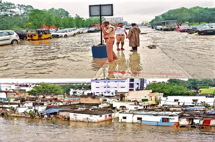 కూకట్పల్లి, జేఎన్టీయూ, నిజాంపేట్, యూసుఫ్గూడ, చార్మినార్, కోఠి, ఉప్పల్ సహా నగరంలోని అనేక ప్రాంతాల్లో ఇదే పరిస్థితి నెలకొంది. నగరంలోని కోఠి ఈఎన్టీ ఆసుపత్రి ప్రాంగణం చెరువును తలపించింది. ఆసుపత్రిలోని వార్డులు, అత్యవసర చికిత్సా విభాగంలోకి భారీగా వరద నీరు చేరడంతో రోగులు, వైద్య సిబ్బంది తీవ్ర అవస్థలు పడ్డారు.