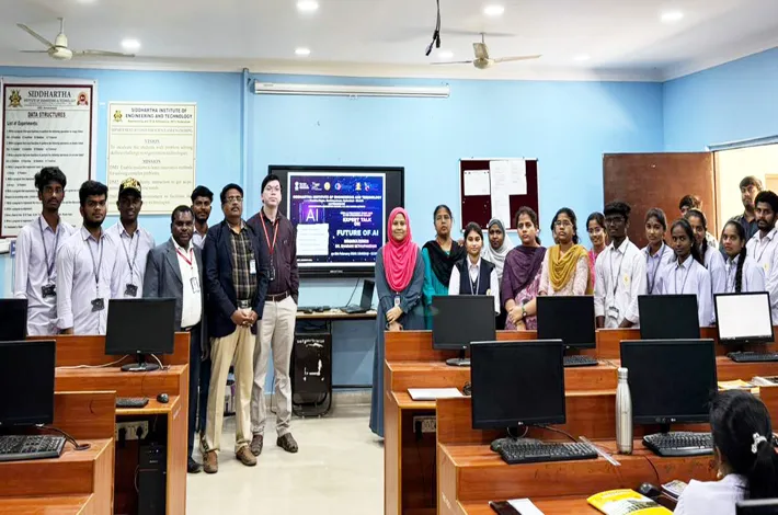 హైదరాబాద్, ఫిబ్రవరి 9 (విజయక్రాంతి): సిద్ధార్థ ఇనిస్టిట్యూట్ ఆఫ్ ఇంజనీ రింగ్ అండ్ టెక్నాలజీ, ఇబ్రహీంపట్నం హైదరాబాద్ కళాశాలలో ఇనిస్టిట్యూషన్ ఇన్నో వేషన్ కౌన్సిల్ ఆధ్వర్యంలో సోమవారం ‘ఫ్రీ ఏఐ సమ్మిట్ 2026’ ‘ఏఐ ఫర్ ఆత్మనిర్భర్ భారత్’ కార్యక్రమం నిర్వహించారు. చైర్మన్ డాక్టర్ జి నాగయ్య, సెక్రటరీ డాక్టర్ డి ప్రదీప్ కుమార్, డైరెక్టర్ మిస్టర్ జి భగత్, ప్రిన్సిపల్ డాక్టర్ పి శేఖర్ బాబు, ఐఐసి కోఆర్డినేటర్ డాక్టర్ కండే శ్రీనివాస్, వివిధ విభాగాల అధిపతులు, అధ్యాపకులు, విద్యార్థులు పాల్గొ న్నారు. రిసోర్స్ పర్సన్ డాక్టర్ బరణి సేతుపాండ్యన్ మాట్లాడుతూ.. ఏఐ అనేది పిల్లలకు ఎంతో ఉపయోగకరమైనది అని, భవిష్యత్తులో ఏఐతోనే అన్ని పనులు చేసుకోవడానికి వీలవుతుంది అని తెలియజేశారు.
