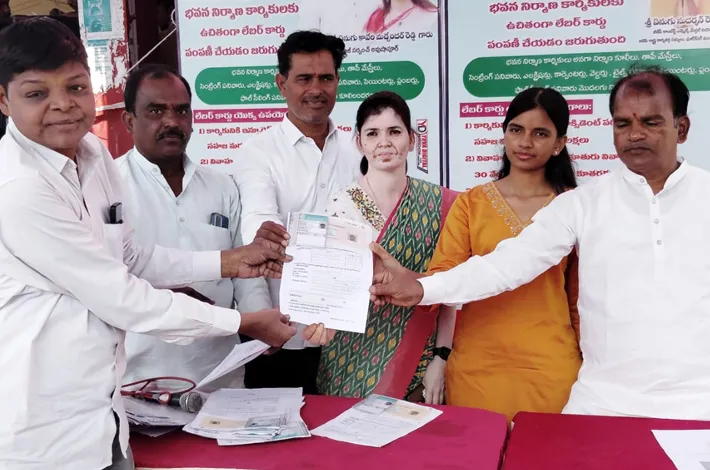 భవన నిర్మాణ కార్మికులకు ఉచితంగా లేబర్ కార్డులు పంపిణీ