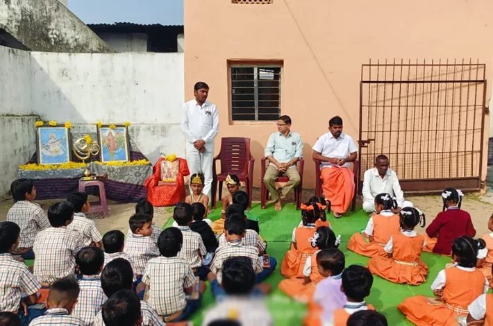 నిర్మల్ (విజయక్రాంతి): శ్రీ సరస్వతి శిశు మందిర్ బుధవార్ పేట్ పాఠశాలలో గీతా జయంతి ఉత్సవాన్ని ఘనంగా నిర్వహించడం జరిగింది. కార్యక్రమంలో పాఠశాల కార్యదర్శి అయిన శ్రీకాంత్ ఆర్య మాట్లాడుతూ భగవద్గీత పురాతనమైన గ్రంథమని, భగవద్గీతలో ఏ ప్రశ్నకైనా సమాధానం దొరుకుతుందని, ఇంట్లో భగవద్గీత ఉండాలని భగవద్గీతలో రోజు ఒక శ్లోకాన్ని కచ్చితంగా పారాయణం చేయాలని తెలియజేశారు. ఈ కార్యక్రమంలో చిన్నారులు భగవద్గీత శ్లోకాలతో ఆకట్టుకున్నారు. భగవద్గీత మన దేశానికి ఒక గర్వకారణం అని పురాతన గ్రంథం అని తెలియజేశారు. పాఠశాల పూర్వ విద్యార్థి సమితి కోశాధికారి అయిన కిషోర్, సమితి కోశాధికారి, పాఠశాల విద్యార్థులు ఆచార్యులు పాల్గొన్నారు.