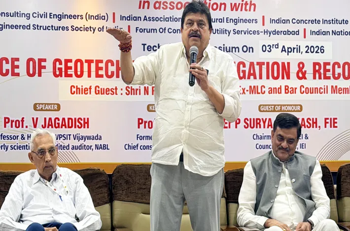 హైదరాబాద్, ఏప్రిల్ 3 (విజయక్రాంతి): నిర్మాణాలను నియంత్రించే ప్రభుత్వ విభాగాలు, మున్సిపల్ సంస్థలు జియోటెక్నికల్ విచారణను తప్పనిసరి చేయాలని బీజేపీ రాష్ట్ర అధ్యక్షుడు ఎన్.రాంచందర్ రావు తెలిపారు. ప్రత్యేక విభాగాలను ఏర్పాటు చేస్తే నిర్మించే భవనాల భద్రత, ఆయుష్షు గణనీయంగా పెరుగుతాయని, ఇది అత్యవసమరన్నారు. శుక్రవారం ఖైరతాబాద్లోని ఇన్స్టిట్యూషన్ ఆఫ్ ఇంజనీర్స్ తెలంగాణ స్టేట్ సెంటర్లో నిర్వహించిన ఇంపార్టెన్స్ ఆఫ్ జియోటెక్నికల్ ఇన్వెస్టిగేషన్ అండ్ రికమండేషన్ సదస్సులో ఆయన పాల్గొని మాట్లాడారు.