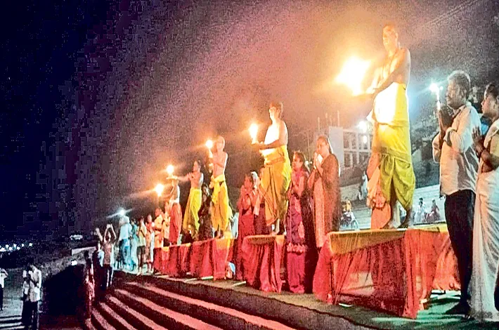 భద్రాచలం, ఏప్రిల్ 19,(విజయక్రాంతి): భద్రాచలం గోదావరి మాత నదిహారతి పురోహితులు మంత్రోచ్ఛారణలతో అంగరంగ వైభవంగా జరిగిందని భద్రాద్రి బ్రాహ్మణ పురోహిత సంఘం అధ్యక్షులు రామవజ్జల రవికుమార్ అన్నారు. ఆదివారం శ్రీ సీతారామచంద్రస్వామి దివ్య క్షేత్రం భద్రాచలంలో గోదావరి కరకట్ట ప్రదేశాలలో జరిగిన నదీహారతి కార్యక్రమములో ఆయన పాల్గొన్నారు.