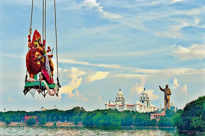 మేళతాళాలు, కోలాటా లు, డప్పు చప్పుళ్ల మధ్య అమ్మవారి విగ్రహాలను ఊరేగింపుగా ట్యాంక్బండ్కు తీసుకొ చ్చారు. భక్తుల జై బోలో దుర్గా మాతా కీ నినాదాలతో పరిసరాలు మార్మోగాయి. నగరంలోని వివిధ ప్రాంతాల నుంచి తరలివ చ్చిన భక్తులతో ట్యాంక్బండ్ పరిసరాలు కిటకిటలాడాయి. గ్రేటర్ హైదరాబాద్ మున్సి పల్ కార్పొరేషన్ జీహెచ్ఎంసీ నగరం వ్యా ప్తంగా మొత్తం 20 ప్రాంతాల్లో నిమజ్జనం కోసం ఏర్పాట్లు చేసింది.