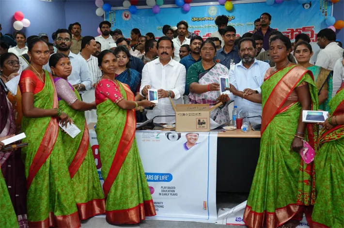 మంత్రి సీతక్క క్షేత్రస్థాయిలో అంగన్వాడి సేవల బలోపేతానికి మొబైల్ ఫోన్లో పంపిణీ