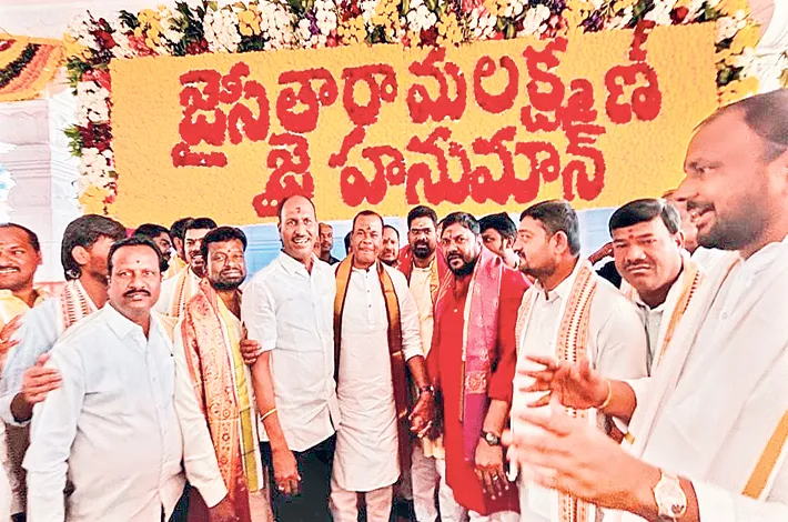మేడిపల్లి,ఫిబ్రవరి 20 (విజయక్రాంతి): మల్కాజ్ గిరి మున్సిపల్ కార్పొరేషన్ పరిధిలోని బోడుప్పల్లో సీతా రామాంజనేయ స్వామి విగ్రహ పున ప్రతిష్ట కార్యక్రమం అం గరంగ వైభవంగా నిర్వహించారు. శుక్రవారం జరిగిన ఈ వేడుకల్లో మంత్రి కోమ టిరెడ్డి వెంకటరెడ్డి, మల్కాజ్గిరి ఎంపీ ఈటల రాజేందర్, మేడ్చల్ ఎమ్మెల్యే చామకూర మల్లారెడ్డి పాల్గొన్నారు.