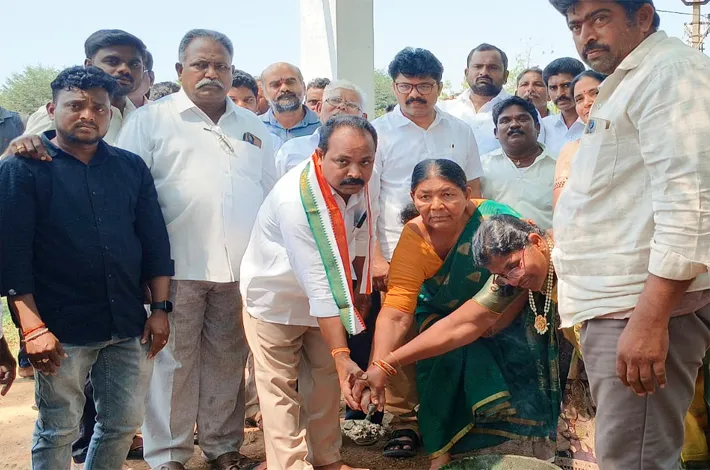 ఎర్రుపాలెం, మార్చి 26, (విజయక్రాంతి): తెలంగాణ రాష్ట్ర ఉప ముఖ్యమంత్రి వర్యులు శ్రీ మల్లు బట్టి విక్రమార్క గారి కృషితో మీనవోలు గ్రామంలో మంజూరైన 22 లక్షల నిధుల తో సిమెంటు రోడ్లుకు ఈరోజు గ్రామ సర్పంచ్ కోటా కన్నమ్మ , ఖమ్మం జిల్లా కాంగ్రెస్ పార్టీ ఉపాధ్యక్షులు వేమిరెడ్డి సుధాకర్ రెడ్డి జిల్లా నాయకులు కోటా రాంబాబు ఏఎంసీ డైరెక్టర్ వేమిరెడ్డి అనురాధ మరియు గ్రామ ఉపసర్పంచ్ ముక్కర సందీప్ రెడ్డి చేతుల మీదుగా శంకుస్థాపన నిర్వహించడం జరిగింది.