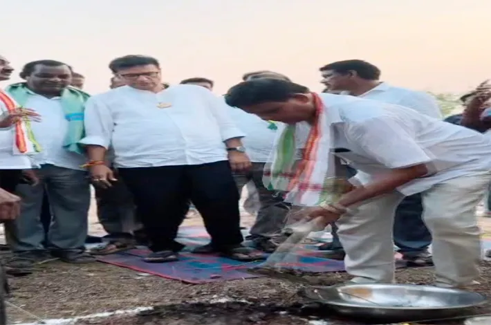 సొంత భూమి ఇచ్చి ఇందిరమ్మ ఇల్లు నిర్మాణానికి మంత్రి శ్రీధర్ బాబుతో భూమి పూజ