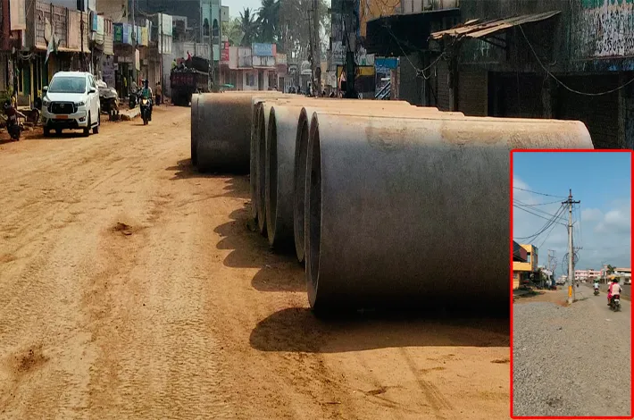 దీనివల్ల రోడ్డు ఇరుకుగా మారి వాహనాల రాకపోకలకు ఆటంకంగా మారింది. అలాగే విద్యుత్ స్తంభాలను కూడా పూర్తిస్థాయిలో వెనక్కి జరిపి వేయకుండా అర్ధాంతరంగా మార్కెట్ వద్ద పనులను వదిలేశారు. ఇక మార్కెట్ రెండు గేటు వద్ద కల్వర్టు నిర్మాణం కోసం పైపులు తీసుకువచ్చి రోడ్డుపైన వేసి, నిర్మాణ పనులను చేపట్టకుండా వదిలేశారు. దీనితో రోడ్డుపైన పైపులు వాహనాల రాకపోకలకు ఇబ్బందికరంగా మారాయి. అలాగే రోడ్డు నిర్మాణ పనుల్లో కొన్నిచోట్ల మెకడం వేసి, మరి కొన్నిచోట్ల మట్టితో నిర్మాణ పనులను వదిలేశారు.