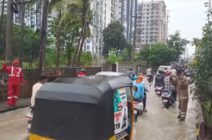 హైదరాబాద్: శుక్రవారం తెల్లవారుజాము నుంచి హైదరాబాద్లో భారీ వర్షం(Heavy rainfall ) కారణంగా ట్రాఫిక్(Hyderabad traffic) జామ్లు ఏర్పడ్డాయి. జనజీవనం అస్తవ్యస్తమైంది. అనేక ప్రాంతాల్లో నీటితో నిండిన రోడ్లు వాహనాల రాకపోకలను మందగించడంతో ప్రయాణికులు చాలా ఆలస్యంగా ఎదుర్కొన్నారు. నిరంతర వర్షాల కారణంగా చాలా మంది నివాసితులు కార్యాలయాలకు చేరుకోవడంలో ఇబ్బంది పడుతున్నట్లు తెలిపారు. శుక్రవారం తెల్లవారుజాము నుంచి కురుస్తున్న భారీ వర్షాల కారణంగా నగరం అంతటా, ముఖ్యంగా ఐటీ కారిడార్లు, జీహెచ్ఎంసీ శివారు ప్రాంతాల్లో తీవ్ర వరదలు, ట్రాఫిక్ జామ్ ఏర్పడింది. హైడ్రా, జీహెచ్ఎంసీ, HMWSSB అధికారులు ప్రధాన కూడళ్లలో మూసుకుపోయిన కాలువలను శుభ్రం చేయడానికి, ట్రాఫిక్ను నిర్వహించడానికి తమ బృందాలను మోహరించారు.