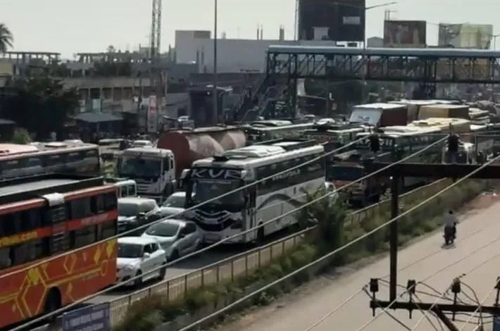 జాతీయ రహదారిపై భారీగా ట్రాఫిక్ జామ్