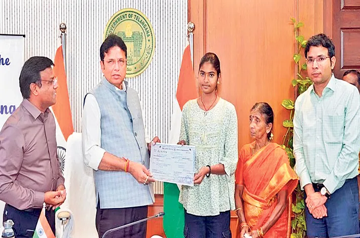 రూ.3 లక్షల ఎఫ్డీ పత్రాన్ని అందించిన మంత్రి శ్రీధర్ బాబు