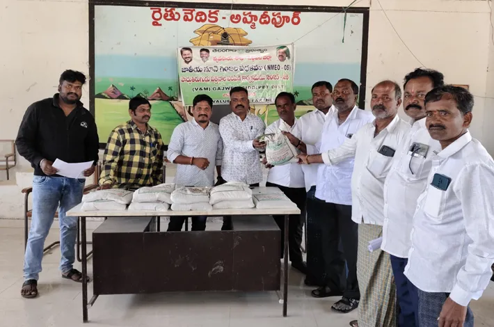 గజ్వేల్: నూనె గింజల పంటల సాగుతో రైతులు అధిక లాభాలు పొందవచ్చని గజ్వేల్ ఏడిఏ బాబు నాయక్ అన్నారు. గ్రామాలలో నూనె గింజల పంటల సాగును ప్రోత్సహించే లక్ష్యంతో నేషనల్ మిషన్ ఆన్ ఎడిబుల్ ఆయిల్స్–ఆయిల్ సీడ్స్ జాతీయ నూనె గింజల పథకము ఆధ్వర్యంలో ఏడిఏ గజ్వేల్ బాబు నాయక్ పర్యవేక్షణలో గజ్వేల్ ఉమెన్ ఫార్మర్స్ ప్రొడ్యూసింగ్ ఆర్గనైజేషన్ ద్వారా రైతులకు పొద్దుతిరుగుడు విత్తనాలను ఉచితంగా పంపిణీ చేశారు.
