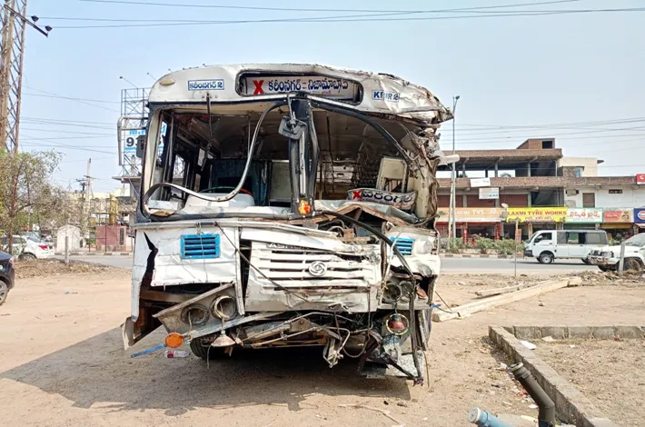 కరీంనగర్ డిపోకు చెందిన ఆర్టీసీ అద్దె బస్సు నిజామాబాద్ నుంచి కరీంనగర్ మీదుగా వరంగల్కు వెళ్తుండగా ఎన్టీఆర్ విగ్రహం వద్ద అదుపుతప్పి లారీని ఢీకొట్టింది. బస్సు ముందు భాగం నుజ్జునుజ్జు కావడంతో ముందు సీట్లో ఉన్న ఆరుగురికి స్వల్ప గాయాలయ్యాయి. ప్రమాదానికి ఆర్టీసీ యాజమాన్యం నిర్లక్ష్యమే కారణమని కార్మికులు ఆరోపించారు. ఆర్టీసీ ఉద్యోగులు సమ్మె చేస్తుండగా అద్దె బస్సులు నడుపుతూ ప్రజల ప్రాణాలతో చెలగాటమాడటం సరికాదని కార్మికులు ఆవేదన వ్యక్తంచేశారు.