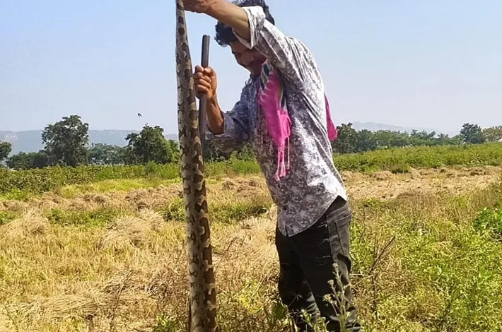 బెజ్జూర్, (విజయ క్రాంతి):బెజ్జూర్ మండలంలోని కుకిడ పంట పొలాల్లో బారి కొండచిలువ కూలీలకు కనిపించడంతో కూలీలు పరుగులు పెట్టారు. ఇట్టి విషయం పొలం యజమానికి తెలపడంతో అక్కడికి చేరుకొని భారీ కొండచిలువను పట్టుకునేందుకు మరి కొంతమంది యువకులు వచ్చి పట్టుకొని బయట ప్రాంతంలో వదిలిపెట్టినట్లు తెలిపారు. ఉదయం సమయంలో పాములు, కొండచిలువలు వరి కుప్పలలో ఉండే ప్రమాదం ఉందని తెల్లవారుజామున పంట పొలాలకు వెళ్లకూడదని రైతులు తెలుపుతున్నారు.