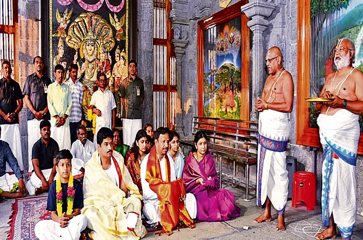 - కుటుంబ సమేతంగా ఆలయంలో ప్రత్యేక పూజలు
