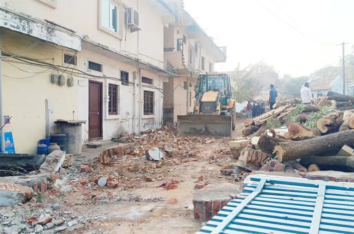 30 ఏళ్లుగా రోడ్డును కబ్జా చేసిన ప్రహరీ నేలమట్టం