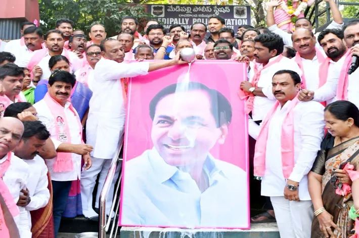 కేసీఆర్ చిత్రపటానికి క్షీరాభిషేకం చేసిన మాజీ మంత్రి మల్లారెడ్డి, మాజీ మేయర్ జక్క వెంకటరెడ్డి