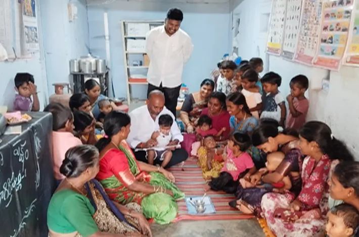 భాగిర్తిపల్లిలో అంగన్వాడీ కేంద్రంలో అన్నప్రాశన, అక్షరాభ్యాసం