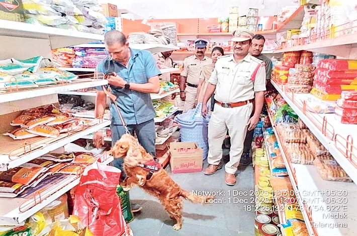 పాపన్నపేట/ రేగోడు, డిసెంబర్ 1 :మండల కేంద్రం పాపన్నపేటలో నార్కోటిక్ డాగ్ స్క్వాడ్ బృందాలు సోమవారం పలు చోట్ల తనిఖీలు నిర్వహించాయి. ప్రయాణ ప్రాంగణ ప్రాంతం, ప్రధాన చౌరస్తా, దుకాణాల్లో సిబ్బంది ముమ్మరంగా తనిఖీలు నిర్వహించారు. డ్రగ్స్, గంజాయి, ఇతర మత్తు పదార్థాలను గుర్తించేందుకు, అవాంఛనీయ ఘటనలు జరగకుండా తనిఖీలు చేపట్టినట్లు ఎస్త్స్ర శ్రీనివాస్ గౌడ్ తెలిపారు. కానిస్టేబుళ్లు, తదితరులున్నారు.