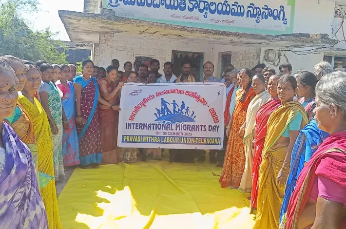 నిర్మల్ (విజయక్రాంతి): నిర్మల్ జిల్లా మామడ మండలం, న్యూ సాంగ్వి గ్రామంలో నేడు అంతర్జాతీయ వలసదారుల దినోత్సవం ప్రవాసి మిత్ర లేబర్ యూనియన్ ఆధ్వర్యంలో ఘనంగా నిర్వహించారు. ఈ సందర్బంగా యూనియన్ రాష్ట్ర అధ్యక్షులు స్వదేశ్ పరికిపండ్ల ఏజెంట్లకు అవగాహన కల్పించారు. గల్ఫ్ దేశాలు వెళ్లే ప్రతి కార్మికుడు శిక్షణ పొంది సర్టిఫికెట్ కలిగి, బీమా పాలసీ చేయించుకొని వెళ్లి, క్షేమంగా తిరిగివచ్చినప్పుడే కుటుంబానికి, దేశానికి మేలు జరుగుతుందన్నారు. ఈ కార్యక్రమంలో గ్రామ సర్పంచ్ అశ్విన్ రెడ్డి, ఉప సర్పంచ్, పంచాయితీ కార్యదర్శి అనసూయ, వార్డ్ మేంబర్లు, యూనియన్ కోఆర్డినేటర్ కొమ్ము గీత, నాయకులు సుశీల, గంగాధర్, రాజేశ్వర్ పెద్ద ఎత్తున గల్ఫ్ కుటుంబాల సభ్యులు, గల్ఫ్ రిటర్నిలు, గ్రామస్థులు పాల్గొన్నారు.