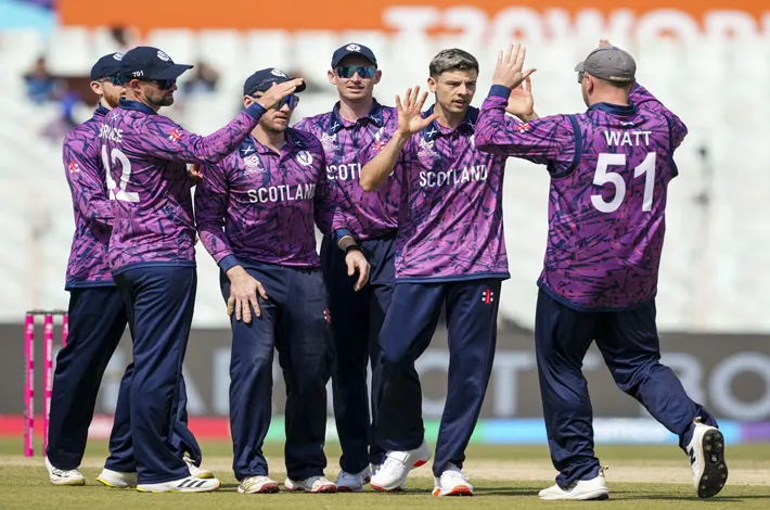 కోల్ కత్తా, ఫిబ్రవరి 9 : టీ20 ప్రపంచకప్లో బంగ్లాదేశ్కు రీప్లేస్ మెంట్గా వచ్చిన స్కాట్లాండ్ తొలి విజయాన్ని అందుకుంది. ఇటలీపై 73 పరుగుల తేడాతో నెగ్గి మెగా టోర్నీలో బోణీ కొట్టింది. తొలుత బ్యా టింగ్కు దిగిన స్కాట్లాండ్ 207 పరుగుల భారీ స్కోరు నమోదు చేసింది. ఓపెనర్ జార్జ్ ము న్సీ 84, బ్రెండన్ మెక్ముల్లెన్ 41, మైకె ల్ లీస్క్ 22 పరుగులతో దుమ్మురేపారు. అలా గే మిచెల్ జోన్స్ 37 రన్స్ చేశాడు.