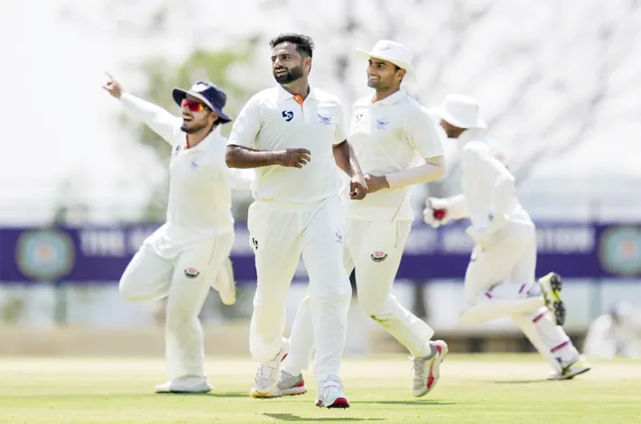 తర్వాత బౌలింగ్లో సైతం ఆధిపత్యం కనబరిచింది. కర్ణాటక కీలక బ్యాటర్లను త్వరగానే పెవిలియన్కు పంపింది. అయితే మయాంక్ అగర్వాల్ అజేయ సెంచరీ(130 బ్యాటింగ్)తో పోరాడుతున్నాడు. కర్ణాటక జట్టులో కీలక బ్యాటర్లంతా నిరాశపరిచారు. కెప్టెన్ దేవ్దత్త్ పడిక్కల్ 11 పరుగులు చేయగా.. సీనియర్ బ్యాటర్లు స్మరన్ రవిచంద్రన్, కరుణ్ నాయర్ ఖాతా తెరవకుండానే పెవిలియన్