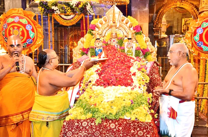 యాదగిరిగుట్ట,(విజయక్రాంతి): యాదగిరిగుట్ట లక్ష్మీనరసింహస్వామి దివ్య క్షేత్రంలో వార్షిక జయంతి మహోత్సవములు శ్రీ పంచరాత్ర ఆగమ శాస్త్రానుసారంగా పంచకుండాత్మక యాగ సహిత మహోత్సవములు అంగరంగ వైభవంగా నిర్వహించడం జరుగుతుంది. శ్రీ లక్ష్మీ నరసింహ స్వామివారి ఐదురోజుల జయంతి ఉత్సవములలో భాగముగా సోమవారం రెండవరోజు ఉదయం స్వామివారి ఆలయ ఆస్ధానమంటపములో లక్షపుష్పార్చన మహోత్సవాన్ని అంగరంగ వైభవంగా నిర్వహించారు. స్వామి వారి అలంకార సేవతో పురవీధులలో ఊరేగింపు స్వామి వారు యజ్గశాలలో నృసింహ మహాలక్మీ మూల మంత్రహవనములు, సుదర్శన శతకహవనము పారాయణీక పండితులచే మూలమంత్ర జపములు నిర్వహించి పూర్ణాహుతి నిర్వహించారు.