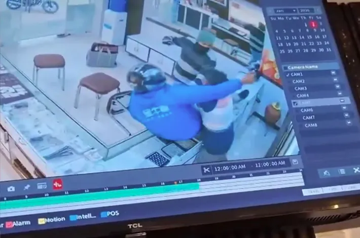 హైదరాబాద్: హైదరాబాద్లోని రాంపల్లి ఎక్స్ రోడ్స్లో ఉన్న ఒక నగల దుకాణంలో జరిగిన దోపిడీ ప్రయత్నాన్ని ఆ దుకాణ యజమాని అడ్డుకున్నారు. దాంతో దొంగలు పారిపోవాల్సి వచ్చింది. ఈ సంఘటన నగల దుకాణంలోని సీసీటీవీ కెమెరాలో రికార్డయింది. ఈ ఘటనకు సంబంధించిన సీసీటీవీ ఫుటేజీలో, దుకాణ యజమాని ధైర్యంగా దాడి చేసిన వారిని ఎదుర్కోవడం కనిపించింది. ముఖాలకు ముసుగులు ధరించిన ఇద్దరు గుర్తు తెలియని వ్యక్తులు దుకాణంలోకి ప్రవేశించారు. వారిలో ఒకరి వద్ద తుపాకీ ఉండగా, మరొకరి వద్ద గొడ్డలి ఉంది. ఆ ఫుటేజీలో, ఆ వ్యక్తులలో ఒకరు దుకాణ యజమానిని గొడ్డలితో బెదిరిస్తూ, అతన్ని లొంగదీసుకోవడానికి ప్రయత్నించడం కనిపిస్తుంది. అయితే, యజమాని ప్రతిఘటించడంతో, దోపిడీని అడ్డుకుని, వారిని అక్కడి నుండి పారిపోయేలా చేస్తాడు.