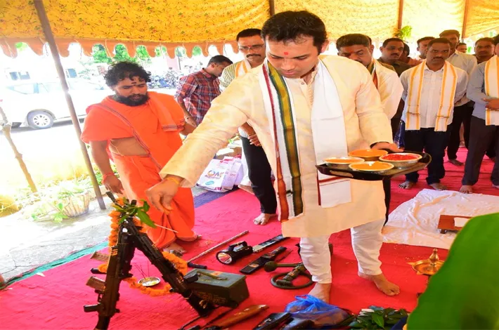 ఆయుధ,వాహన పూజల్లో పాల్గొన్న కరీంనగర్ పోలీస్ కమిషనర్