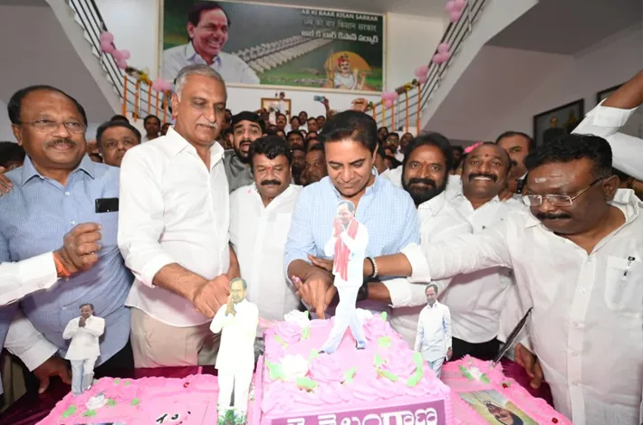 హైదరాబాద్: తెలంగాణ భవన్లో (Telangana Bhavan) బీఆర్ఎస్ అధినేత, మాజీ ముఖ్యమంత్రి కల్వకుంట్ల చంద్రశేఖర్రావు జన్మదిన వేడుకలు ఘనంగా జరిగాయి. మాజీ మంత్రి, ఎమ్మెల్యే తలసాని శ్రీనివాస్ యాదవ్ గారి ఆధ్వర్యంలో జరిగిన వేడుకలకు బీఆర్ఎస్ పార్టీ వర్కింగ్ ప్రెసిడెంట్ కేటీఆర్, మాజీ మంత్రులు హరీష్ రావు, మహమూద్ అలీ, జగదీష్ రెడ్డి, వి. శ్రీనివాస్ గౌడ్, కొప్పుల ఈశ్వర్, లక్ష్మా రెడ్డి, ఎమ్మెల్యేలు ముఠా గోపాల్, పాడి కౌశిక్ రెడ్డి, ఎమ్మెల్సీలు దాసోజు శ్రవణ్, నవీన్ కుమార్ రెడ్డి, తక్కళ్లపల్లి రవీందర్ రావు, బీఆర్ఎస్ జనరల్ సెక్రటరీ ఆర్.ఎస్. ప్రవీణ్ కుమార్, తదితర నాయకులు ముఖ్య అతిథులుగా హాజరై కేక్ కట్ చేశారు.
