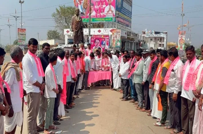 కెసిఆర్ జన్మదిన సందర్భంగా జాతీయ రహదారి ముఖ్య కూడలిలో కేక్ క ట్ చేసి జన్మదిన శుభాకాంక్షలు తెలిపారు. ఈ కార్యక్రమంలో బీఆర్ఎస్ పార్టీ మండల అధ్యక్షుడు శ్రీశైలం యాదవ్ నాయకులు బ చ్చిరెడ్డి నరసింహులు, సత్తయ్య,రమేష్ నా యక్, ఆనంద్ గౌడ్ నజీం బేగ్, శ్రీనివాస్, ఆల్ఫాఫ్, యాదగిరి, అచ్చయ్య తదితరులు పాల్గొన్నారు.